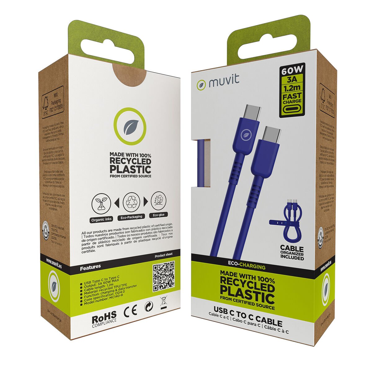 Als je een fan bent van IT en elektronica, blijf up-to-date in de wereld van technologie en mis zelfs de kleinste details niet, koop Kabel USB-C naar USB-C Muvit for Change Blauw 1,2 m tegen een onklopbare prijs.