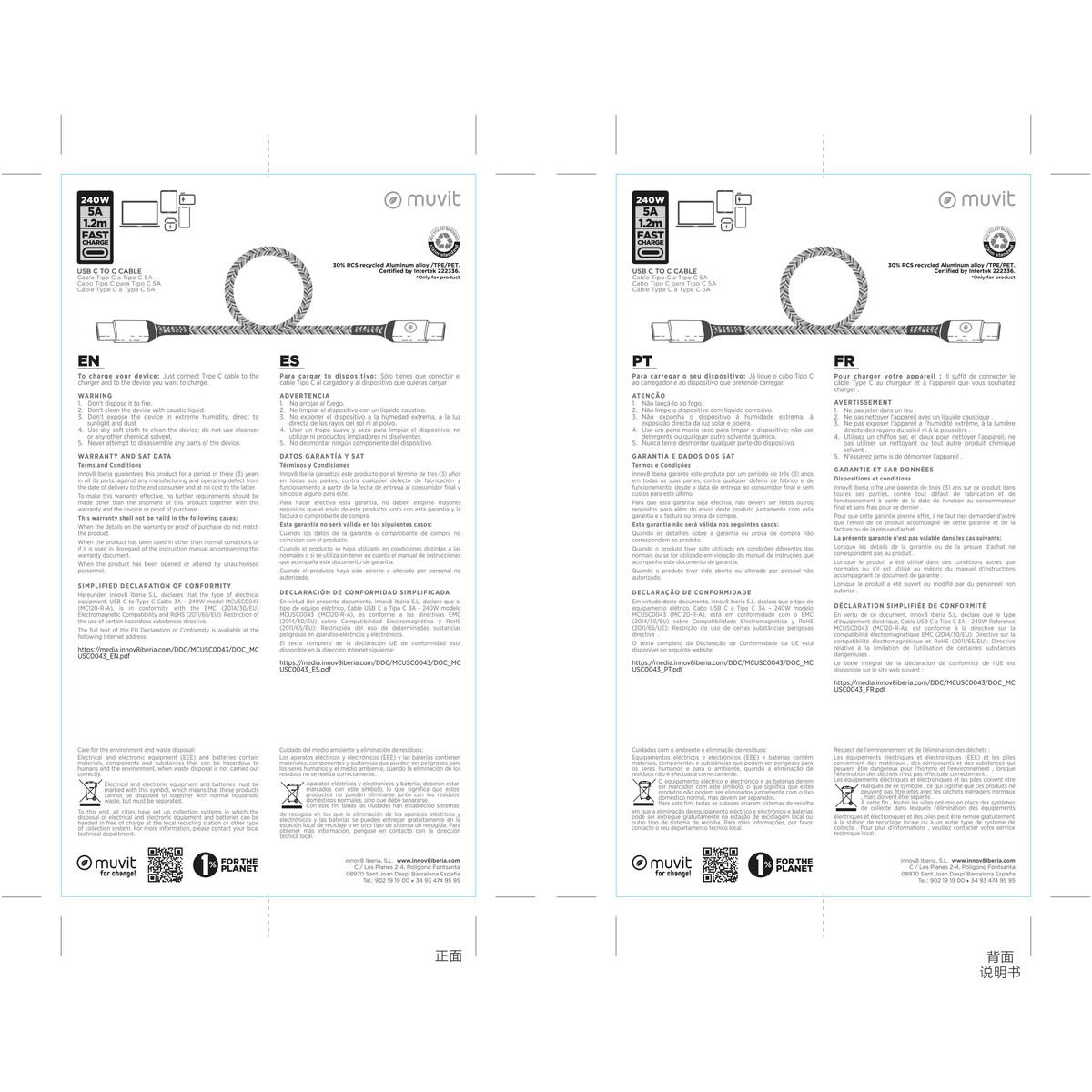 Kabel USB-C naar USB-C Muvit for Change Zwart 1,2 m