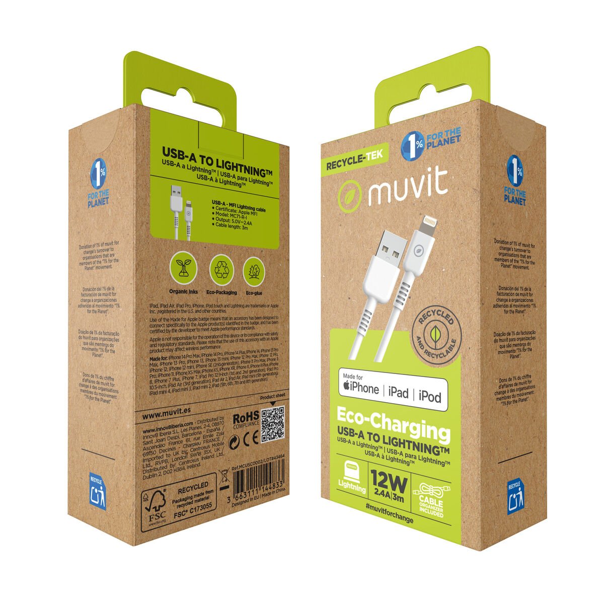Als je een fan bent van IT en elektronica, blijf up-to-date in de wereld van technologie en mis zelfs de kleinste details niet, koop Kabel USB naar Lightning Muvit for Change Wit tegen een onklopbare prijs.