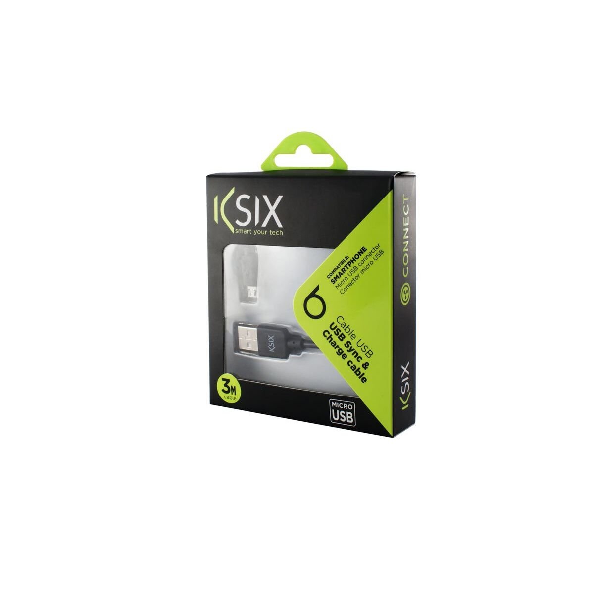 Ksix B1740CU03. Lengte snoer: 3 m, Aansluiting 1: USB A, Aansluiting 2: Micro-USB B, USB-versie: 2.0, Geslacht connector: Mannelijk/Mannelijk, Kleur van het product: Zwart