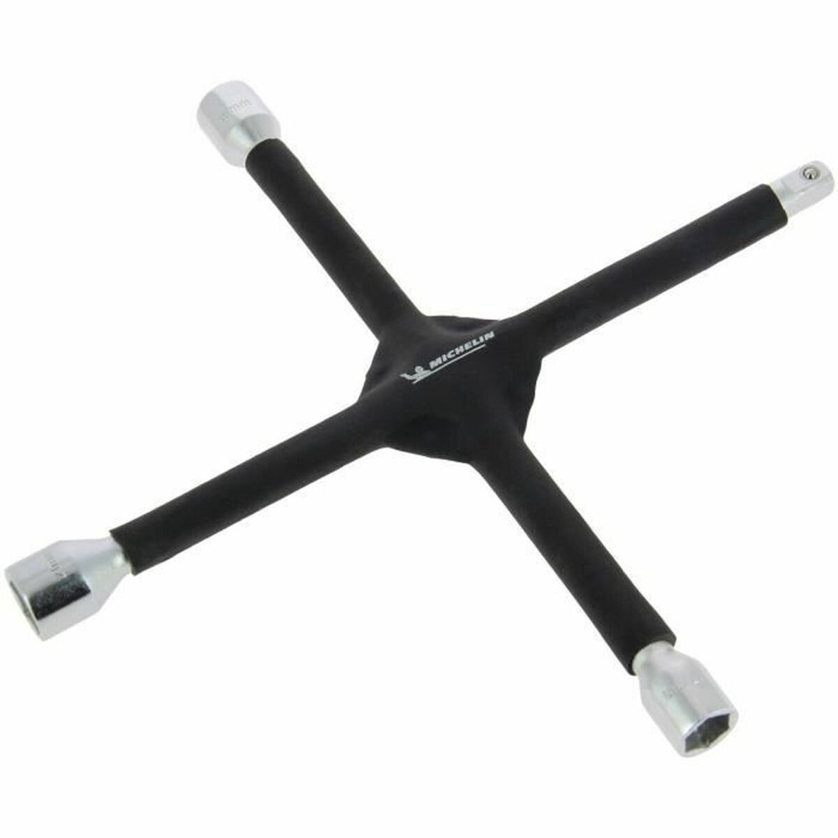 De kruissleutel MICHELIN model 8530 is een essentieel gereedschap voor elke doe-het-zelver of professional in autotechniek en onderhoud, ontworpen om veelzijdigheid en duurzaamheid te bieden bij het vast- en losdraaien van wielen. Gemaakt van gelegeerd staal met een verchroomde afwerking, combineert deze dop sleutel de hardheid en levensduur van staal met de corrosiebescherming van chroom, wat zorgt voor een lange levensduur, zelfs onder zware omstandigheden. Het kruisvormige ontwerp heeft vier doppen met maten 17, 19 en 21 mm, plus een 1/2 vierkant voor het bevestigen van andere accessoires of gereedschap, wat het werken met diverse moeren en bouten in de auto- en machinebouw vergemakkelijkt. Daarnaast is hij voorzien van een antislip schuimlaag (model MIC3221320085301) die de grip en veiligheid verbetert tijdens gebruik, vermoeidheid vermindert en het risico op uitglijden beperkt. Deze sleutel valt op door zijn ergonomisch ontwerp en kwaliteitsmaterialen, die een goede balans bieden tussen stevigheid en gebruiksgemak, en zo een praktische en betrouwbare oplossing vormen voor mechanische taken die precisie en kracht vereisen. Samengevat is de MICHELIN 8530 kruissleutel een robuust, veelzijdig en veilig gereedschap, ideaal voor wie een duurzaam en functioneel product zoekt voor onderhoud en reparatie van voertuigen en diverse machines.
